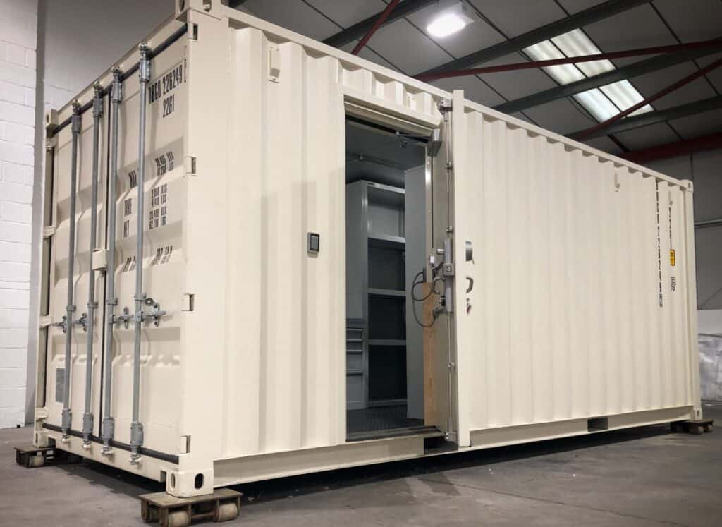 Modular Security Solutions’ high security composite panels are used to line out the container, creating a secure envelope and giving it a high level of resistance to attack and forced entry.