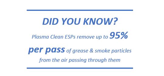 The grease and smoke collected by the ESP would otherwise find its way into the downstream duct work causing a fire risk and requiring TR19 Grease duct cleaning. By employing an ESP early on in the extraction system, downstream duct cleaning is dramatically reduced. This is particularly important when the duct runs through a building and access is not possible.